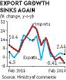 The shipment of engineering goods, a prime driver of export growth until recently that also accounts for around a fourth of total exports, grew just 1.7% in February, while gems and jewellery exports fell 2.1%. Petroleum product exports dropped 7.7% to $3.07 billion in February, thanks to a softening oil prices.
