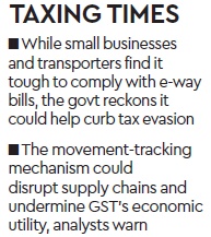 A fear that the revenue from the goods and services tax (GST) might continue to decline unless the tax authorities get an efficient handle to verify the tax liabilities of businesses has prompted the government to advance the implementation of the electronic way (e-way) bill mechanism to February from April. However, industry and trade, along with a section of analysts, stress that the “cumbersome” system could lead to supply chain bottlenecks and undermine the economic utility of the new tax. Businesses, especially the smaller ones and transporters, are finding it difficult to comply with the e-way bill system, while the GST Network’s ability to provide reliable platform to operate the system is also doubtful. Under GST, movement of goods worth above Rs 50,000 beyond 10 kilometres requires the supplier/transporter to generate an e-way bill number on the GSTN portal and carry it or its virtual form during the course of transit and present it to tax inspectors on demand.