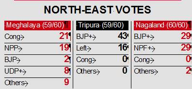 In New Delhi, Shah told reporters: “I congratulate the people for accepting the leadership of Modiji and for putting their stamp of approval on his policies for the North East. These results show what is going to happen in the next few elections… Workers are charged up for the 2019 polls.”