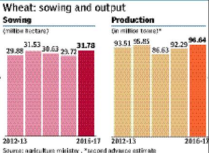 As per the agriculture ministry data, wheat has been sown on 31.78 million ha in the current rabi season (2016-17), 5% more than the average area for the last five years.
