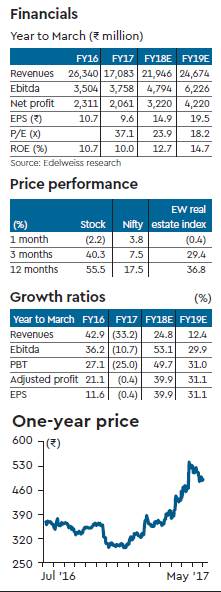 We expect GPL to continue expanding its project portfolio in its focus markets of Mumbai, NCR, Bengaluru and Pune. Post RERA, opportunities for new project acquisition should increase for GPL; we have built-in 15msf of new project additions for FY18 in our NAV estimate. At CMP, the stock trades at 14% discount to our FY18E NAV of Rs 612. We believe the stock is fairly valued and offers limited upside from current levels. Maintain ‘HOLD/SP’.