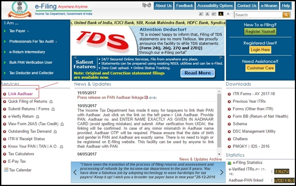 There is no need to login or be registered on E-filing website. This facility can be used by anyone to link their Aadhaar with PAN.