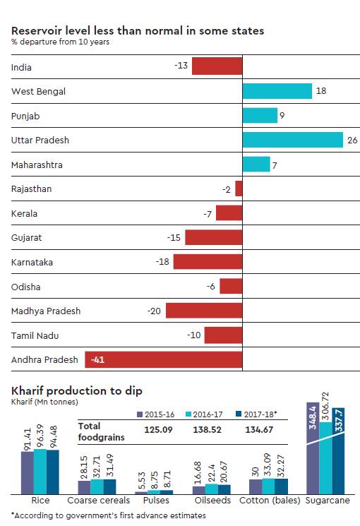 Reservoir levels are important for rabi crops, the sowing of which starts from October. Water storage at 91 major reservoirs looks healthy, at 87% of normal. However, some states like Andhra Pradesh, Tamil Nadu, Madhya Pradesh, Karnataka have deficient water reservoir levels.