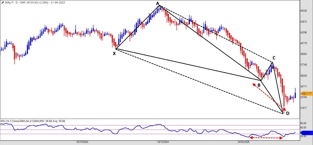 The Nifty IT Index, which held its strength in Q4-2024, has shown signs of fatigue in 2025. From its peak of 46,088, the index corrected to 30,918—a sharp 33% decline. But the story doesn’t end there for technical traders and pattern watchers.