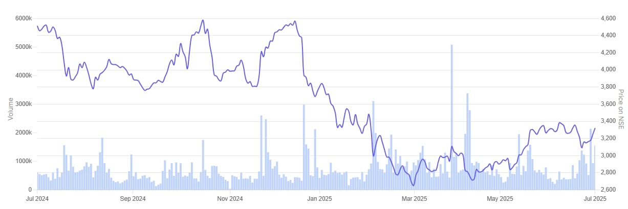 Siemens (India) – 1 Year Share Price Chart