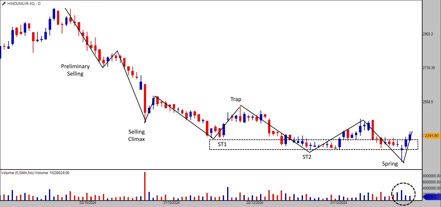 Readers should watch for further accumulation in the stock. The current bullish momentum suggests that HUL could potentially be on the verge of a strong upward move.