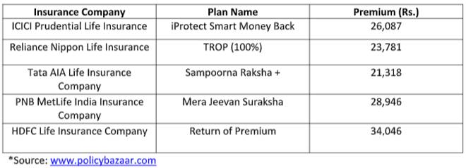 The following is a comparative table of 5 leading insurance companies offering Return of Premium term insurance with Rs 1 crore sum assured for a non-smoker, 30-year-old man who earns between Rs 7 to Rs 10 lakh annually. The cover is up to 65 years of age.