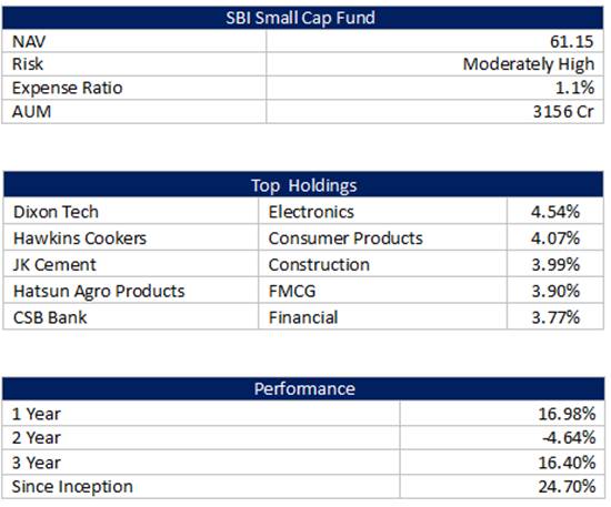 This scheme has been continuously in the top performing funds in the Small cap category, outperforming the peers by a wide margin.