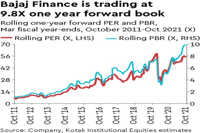 Bajaj Finance’s Q2FY22 earnings were in line with estimates even as write-offs were high, offset by higher NIM. Business momentum is picking up, though investments in growth and recovery expenses offset the benefits in the near term. The Street’s focus will anyway remain on execution of the digital strategy over the next two quarters and digital momentum that may be gathered over subsequent 2-3 quarters. High growth, as a consequence of the aforesaid initiatives, is already reflected in the current market price. Downgrade to Sell post the recent rally; FV at Rs 6,000 (rollover from Rs 5,600).