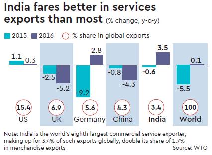 India’s proposals reflect some of the major challenges its own service providers, mainly the IT industry, have been facing in recent years in countries like the US and the UK. Analysts say India’s TFS proposals may invite resistance at the WTO from developed countries, especially the US, given the Trump administration’s belligerent stance on visas for foreign workers. Already, Indian IT companies saw a 37% drop in approved petitions for H-1B visas in 2016 from a year earlier, according to a report by the National Foundation for American Policy—a Washington-based think-tank.