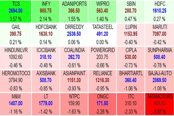 11:05 am: The shares of IT companies trade near 52-week highs with HCL Tech hitting a fresh 52-week high of Rs 903 while TCS nears its 52-week high of Rs 2,744.8, trade up over 3%. On contrary, the shares of blue-chip companies ITC, L&T, Tata Motors, ICICI Bank and Reliance Industries drag.