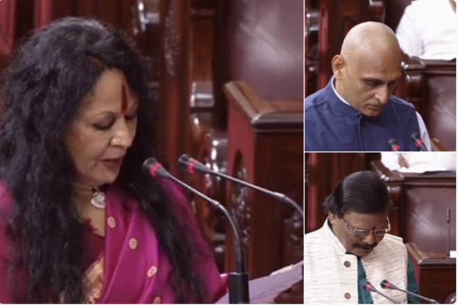 Classical Dancer Sonal Mansingh, Author Rakesh Sinha and Sculptor Raghunath Mohapatra take oath as nominated members of Rajya Sabha. They were nominated by President Ram Nath Kovind.