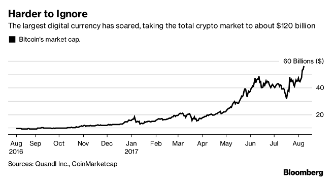 Blockchain is like a digital ledger in which transactions made in bitcoin or another cryptocurrency are recorded chronologically and publicly. According to the data from coindesk.com, the total value of all cryptocurrencies set a new all-time high on Thursday, rising above $126 billion for the first time in history. Cryptocurrencies market has seen a lot of activity, with the prominent currencies recording enormous price gains. Bitcoin has risen 250% so far this year. Bloomberg reported.
