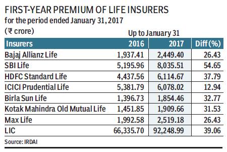 Irdai data also show that, in January, life insurance industry saw first year premium at R13,138.10 crore against R10,283.89 crore in the past fiscal year.
