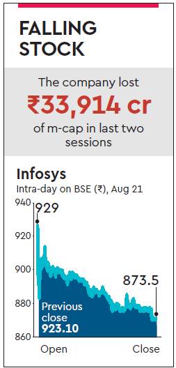 Even as sources close to NR Narayana Murthy claimed on Monday, the chairman emeritus had refrained from participating in the probe in the $200-million Panaya acquisition since he had found terms of reference unsatisfactory, the Infosys stock lost an additional 5.37% on Monday. The stock ended the session at Rs 873.50 and has lost close to Rs 34,000 crore in investor wealth across two sessions. It is no longer in the list of top ten most valued companies. The IT major’s CEO and MD, Vishal Sikka, stepped down on Friday with the Infosys board attributing the blame for the resignation to a continuous assault on him by Murthy. Sources close to Murthy told FE the international law firms engaged in probing the allegations into the acquisition of Panaya by Infosys did meet Murthy who asked them about the scope of the investigation and the Infosys executives including board members who would be interviewed.