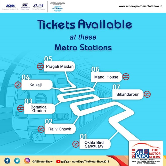 The tickets for the Auto Expo 2018 Motorshow is being held at the India Expo Mart in Greater Noida whereas the Auto Components show is at Pragati Maidan, New Delhi. Tickets for the Auto Expo Motorshow is available online on BookMyShow and offline, the organisers have set up various stalls across the city including in eight metro stations. Famous Rajiv Chowk Metro Station in Connaught place in Central Delhi, Sikandarpur metro station in Gurgaon and Bird Sanctuary metro station in Noida are some top go to metro stations to buy the tickets for Auto Expo.