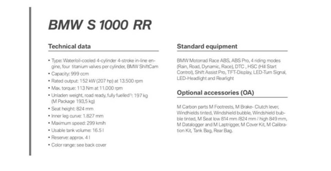 The total kerb weight of the upcoming S1000RR accounts at 197 kg and the optional M package that gets carbon fibre parts further reduces the weight to 193.5 kg. With this, the standard model of the new S1000RR is 11 kg lighter than the outgoing model.