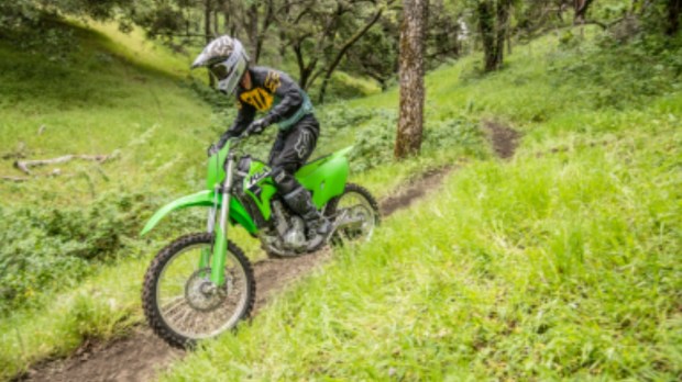 The Kawasaki KX85 is aimed at newbies to the sport, kids and youngsters. The motorcycle features plastic body parts, no lights (headlight, blinkers, or tail lamp), adjustable 36mm USD forks, fully-adjustable KYB rear monoshock, 275mm suspension travel at both ends and rides on 17-inch front and 14-inch rear wheels.