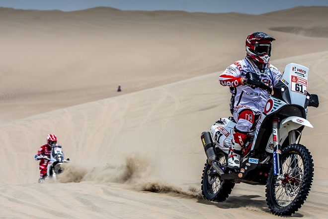 Despite that, Hero Motorsports CS Santosh, who is now coming into his own at the world’s most difficult motorsport event, finished the days rally in 13th place overall aboard his RR 450. Nothing short of a stellar start from the rally-raid veteran. Also getting off to a strong start was Oriol Mena, the team’s rookie rider, who finished 23rd overall in the motorcycle category.