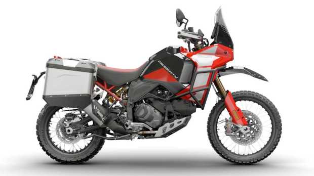 On the features front, the Ducati DesertX Discovery retains all the goodies — fully adjustable UDD forks in the front, KYB monoshock at the rear, wire-spoke wheels, dual-purpose tyres, disc brakes at both ends and a host of electronic aids. The motorcycle gets heated grips, a touring windscreen, a centre stand, and aluminium panniers, while also getting a sturdy engine bash plate.