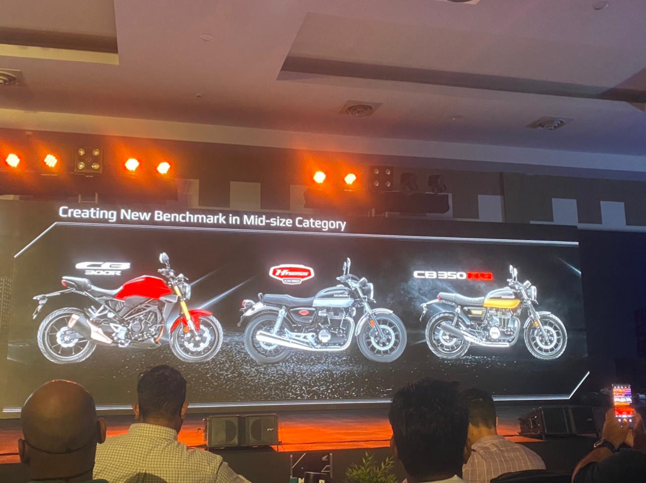 Honda's current 300-350cc segment includes three motorcycles, namely the Honda H'ness CB350, Honda CB350RS, and the Honda CB300R.