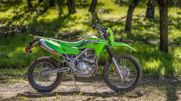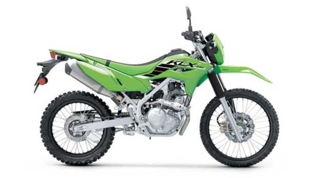 The Kawasaki KLX230 keeps it simple and to the point. The motorcycle gets minimal bodywork, a flat seat, a narrow design between the legs, a telescopic fork, a monoshock at the rear, a 21-18 wheel setup with spoke rims, disc brakes at both ends, a digital instrument cluster, and the exhaust tucked under the seat for maximum clearance.