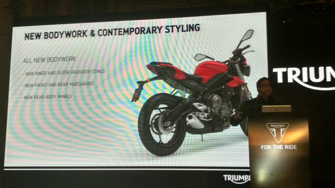 11:13 am:Â The Street Triple S gets features such as an all-new gull wing swing-arm, LED headlamps, LCD instrument cluster and twin seat design
