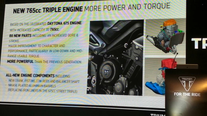 11:55am:Â The new Street Triple S offers 41 percent more powerful, based on the 675cc engine but now us 765 cc with 80 new mechanical parts
