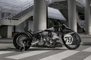 The design inspiration for the custom Harley-Davidson Monster came from Leica M3 camera, a ’50s Biplane and even the stance of a Bison. The original Harley Heritage bodywork was stripped to reveal the Softail frame, which was stretched to get that long and low look.
