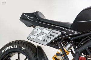 There’s not a hint of the original orange left, but instead, it gets a slick black paint job with white pin stripes. ‘The Sight’ might be a mash-up of more than one style, but the final outcome is just brilliant. The motorcycle is now even lighter and more compact than the already svelte donor bike.