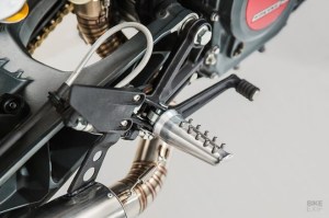 The KTM 250 Duke was factory fresh and was delivered straight to Thrive’s doorstep. The stock bodywork had to go and Thrive replaced plastic for metal and hand-built an aluminium fuel tank, tail section, side panels and front fender. The stock airbox was replaced with a K&N filter.