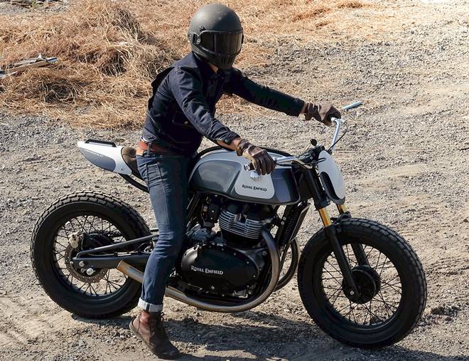 Most of the customisation is in the rear of this brand new Continental GT 650. The rear end of the frame sweeps up to meet a waspish tail unit, and the twin shocks have been replaced with a YSS monoshock hooked up to a custom swingarm.