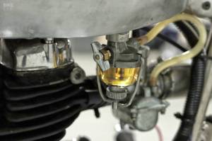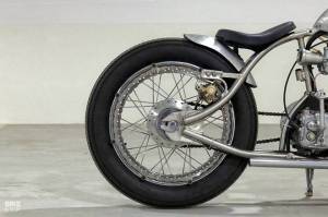 The handlebar is neat looking thanks to an internal throttle assembly and inverted clutch cable setup. “But since I was using an internal throttle, it wasn’t possible to use an inverted lever for the front brake setup,” says Jay. “And hydraulic brakes can’t work that way. So I decided to link both the front and rear brake operations using a single foot pedal.”