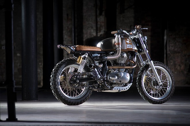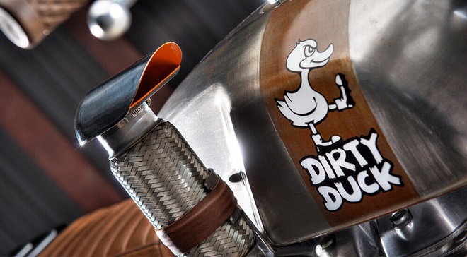 The unique appeal and name of the motorcycle come from the snorkel, which has been handcrafted by the extraordinary craftsmen at Harris Performance. Additionally, the airbox has been modified to allow the passage of the straight-through exhaust, which makes the modified Continental GT Dirty Duck sound several times more than its capacity.