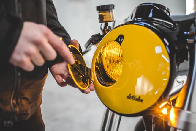 The original suspension on the stock Triumph Thruxton R are good in their stock form, but deBolex gave it new fork upgrade and rear shock from the British racebike specialist Maxton. They upgraded the front brakes to Brembo’s 484 callipers and 320mm discs from ISR.