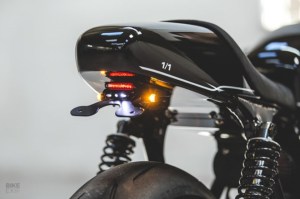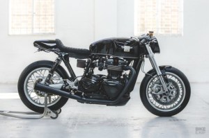Calum and his partner Des Francis were influenced by early TT racers and also added a unique modern twist. The custom Triumph Thruxton R was given stainless steel spokes, wrapped in Metzeler Racetec tyres.