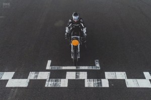 The custom Triumph Thruxton R draws its design inspiration from the 50s and 60c racing era. The concept comes from the era’s race car engineering when heavy steel bodies were removed from saloons and sports cars, replacing them with lightweight aluminium bodies and improving the chassis and performance.