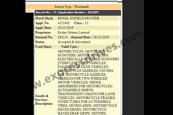 Royal Enfield working on a new 250cc engine platform is not a thing of very recent past! There have been widespread speculations for the last few years that the Chennai-based manufacturer is working on the said engine platform and the same will spawn multiple products. Now, very recently, the company has registered the name ‘Hunter’ for one of its upcoming offerings. The exact details about the motorcycle are unknown at the moment and it would be too early to comment on its design and styling. However, keeping in mind the fact that 250cc rumours have spiced up in recent times, the name could be used for a quarter-litre Enfield. If you ask us, in terms of appearance, we believe that the upcoming Royal Enfield Hunter will have a similar widely-accepted street cruiser styling that will appeal to the majority of the audience.