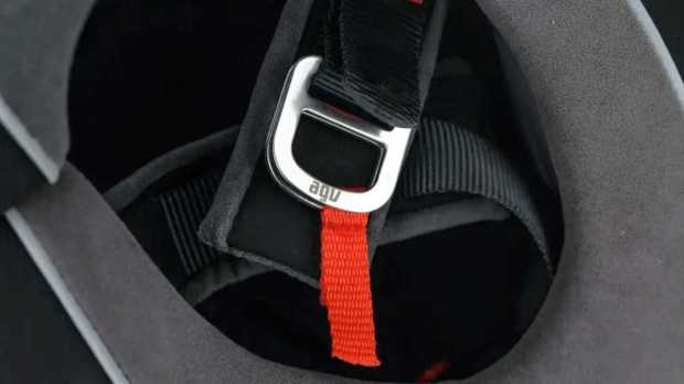 Yep, motorcyclists love it — it takes a bit of getting used to, and once you have the hang of it, you will never want to part. The double D rings do not rely on any mechanism and have been around for many, many years, proving that simplicity is the safest. There are no parts that will give up over time or in the event of a crash, and all race circuits require helmets to have double D rings — even mandated by FIM standards. In our opinion, this is the safest out there.