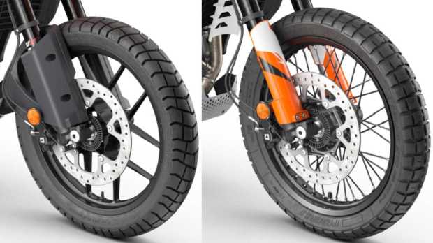 The next difference comes with the equipment they carry — both motorcycles feature 43mm USD forks with 200mm travel, however, the Adventure X gets no adjustability while the Adventure gets compression and rebound damping. The rear gets a 10-step adjustable monoshock on both motorcycles.