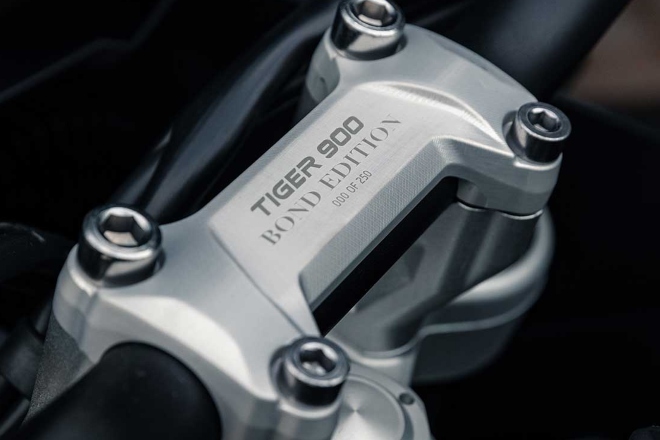 This new limited edition motorcycle from Triumph is based on the top-spec Rally Pro variant of the Tiger 900. Triumph Motorcycles has revealed that only 250 units of the new Tiger 900 Bond Edition will be available globally. Each of these limited edition motorcycles will be individually numbered on the handlebar clamp with a signed certificate of authenticity. The Tiger 900 Bond edition will be finished in a unique Matt Sapphire Black paint scheme and it will feature exclusive ‘007’ graphics with blacked-out inserts to make this good-looking ADV even more appealing.