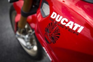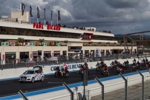 Certified by Raphaël Botte, the judiciary official of Bandol (Var, France), the 517 Monster bikes took a lap of the track. They were led by former official Ducati WSBK rider Régis Laconi, who rode ahead of the bunch as, quite literally, the Ducati flag bearer.