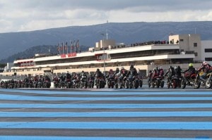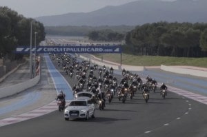 Certified by Raphaël Botte, the judiciary official of Bandol (Var, France), the 517 Monster bikes took a lap of the track. They were led by former official Ducati WSBK rider Régis Laconi, who rode ahead of the bunch as, quite literally, the Ducati flag bearer.