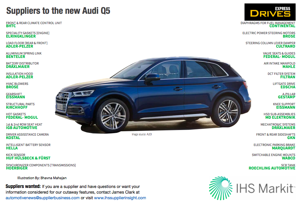 The components suppliers the new Audi Q5 majority are Germans and the SUV is based on the MLB Evo platform and does look like the mini Audi Q7. This new architecture has allowed Audi Q5 to lose its weight by over 100 Kg. The design is now more bold and sharper with and features a new single-frame grille with LED Matrix headlamps with large shut lines on the bonnet making it very sporty. The rear of the Q5 SUV gets a roof-mounted spoiler and an updated bumper with a diffuser.