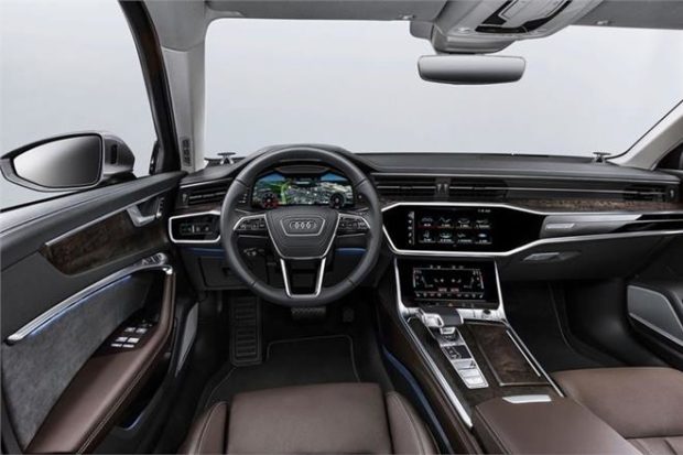 The new Audi A6 will get Audi’s new design language and will host the large hexagonal shaped grille on the face of the car. Audi A6 will get an updated sharp headlamp cluster with DRLs and LED matrix headlights. The dimensions of the Audi A6 sedan gets balanced proportions along with a long hood, longer wheelbase and short overhangs. The A6 now measures is 4,939 mm in length making it 7 mm longer than its predecessor. The width has been increased by 12 mm to 1,886 mm while the height at 1,457 mm now 2 mm taller than on the outgoing model. The wide, low-slung Singleframe grille, the flat headlights and the contoured air inlets enhance the sporty appeal of the car.