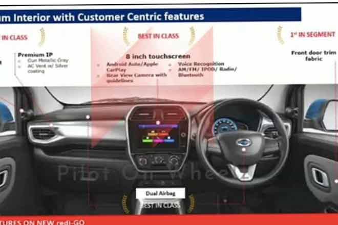 The detailed list of equipment that the 2020 Datsun Redi-Go will offer once it is launched has been leaked online which has revealed that the Redi-Go will feature a new dash that offers an 8-inch touchscreen infotainment system.
