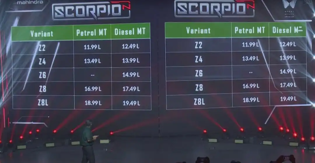 The price of the new Mahindra Scorpio-N starts in India at Rs 11.99 lakh, ex-showroom. The variant-wise prices of the SUV are mentioned in the above image.
