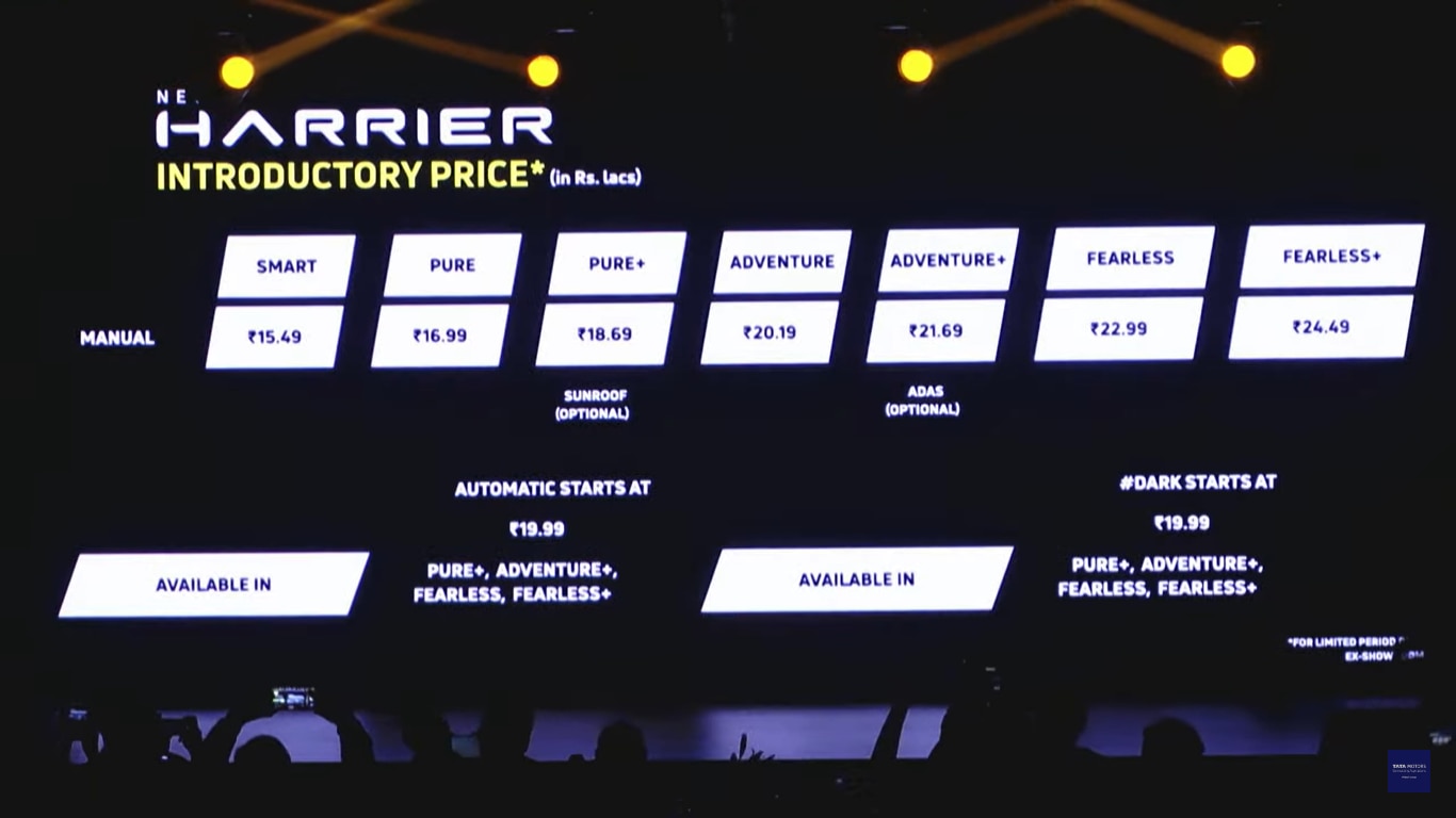 Introductory prices for the 2023 Tata Harrier facelift start at Rs 16.19 lakh (ex-showroom).