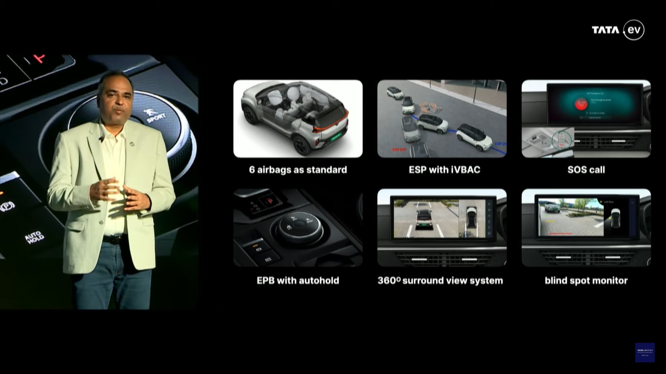 Safety package on the updated Nexon EV include 6 airbags, a 360-degree parking camera, ABS with EBD, reversing camera, front parking sensors, ISOFIX seat anchors, 3-point seatbelts for all occupants, electronic stability control, an auto-dimming rearview mirror and more.
