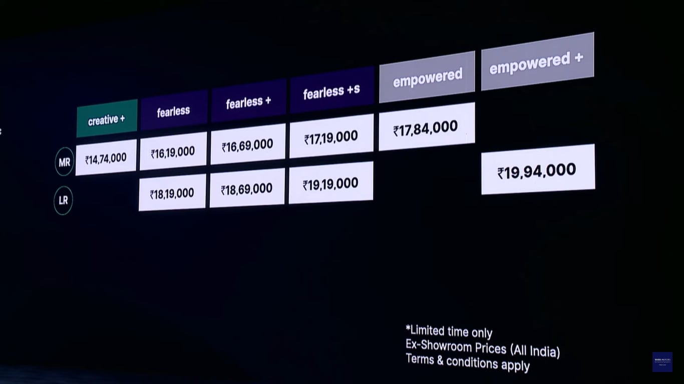 Tata Nexon.ev is available in six variants including Creative+, Fearless, Fearless+, Fearless+ S, Empowered and Empowered+, and two derivatives: Medium and Long Range.